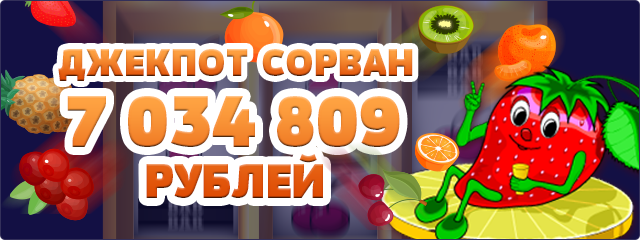 Лето активно набирает обороты, а Клубнички становятся щедрее прямо на глазах! Они давно поспели и насыпали по полной одному из наших игроков. Вы только посмотрите, какой джекпот достался в слоте Fruit Cocktail счастливчику alexd*** — 7034809 рублей! Готовы поймать больше? Тогда врывайтесь и сорвите свой самый сладкий куш!