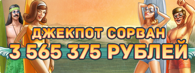 Вот это молодец! Игрок jacki*** сорвал джекпот: целых 3 565 375 рублей в игре Wild Water! Поздравляем везунчика! Счетчик обнулен, а значит следующий крупный куш может стать вашим. Сыграйте!Еще один счастливчик!